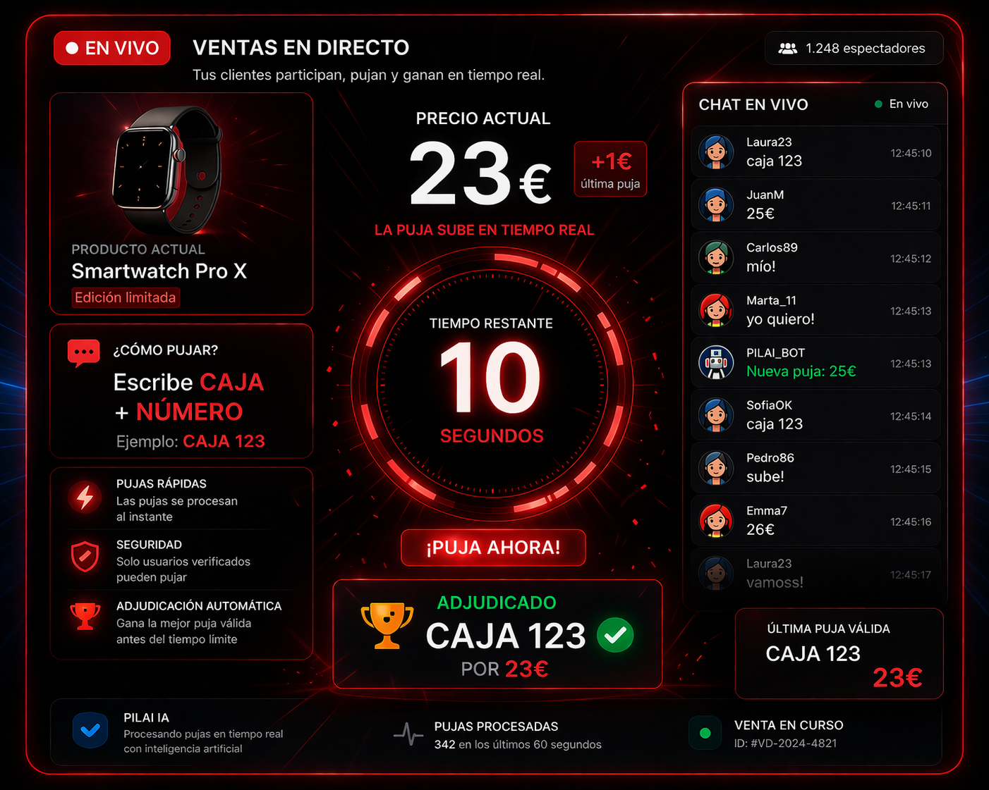 Escribe “caja + número” o realiza una oferta.