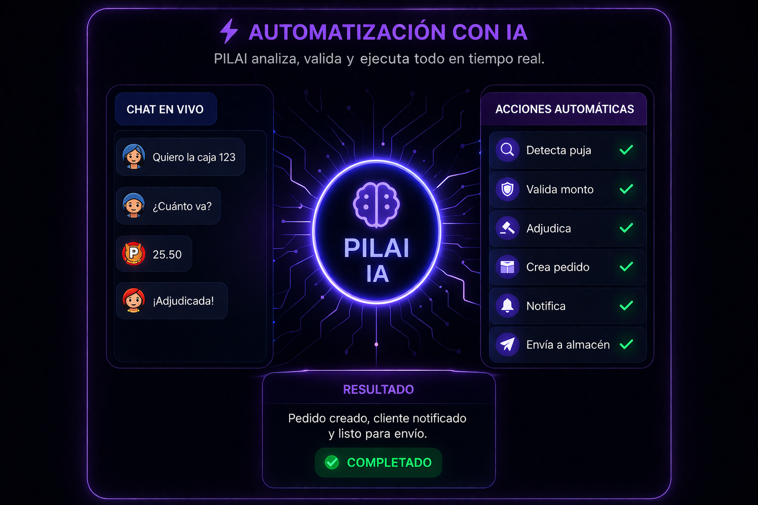 Automatiza subastas, pagos, pedidos y envíos en tiempo real sin errores